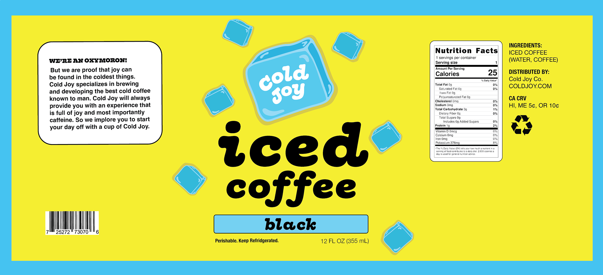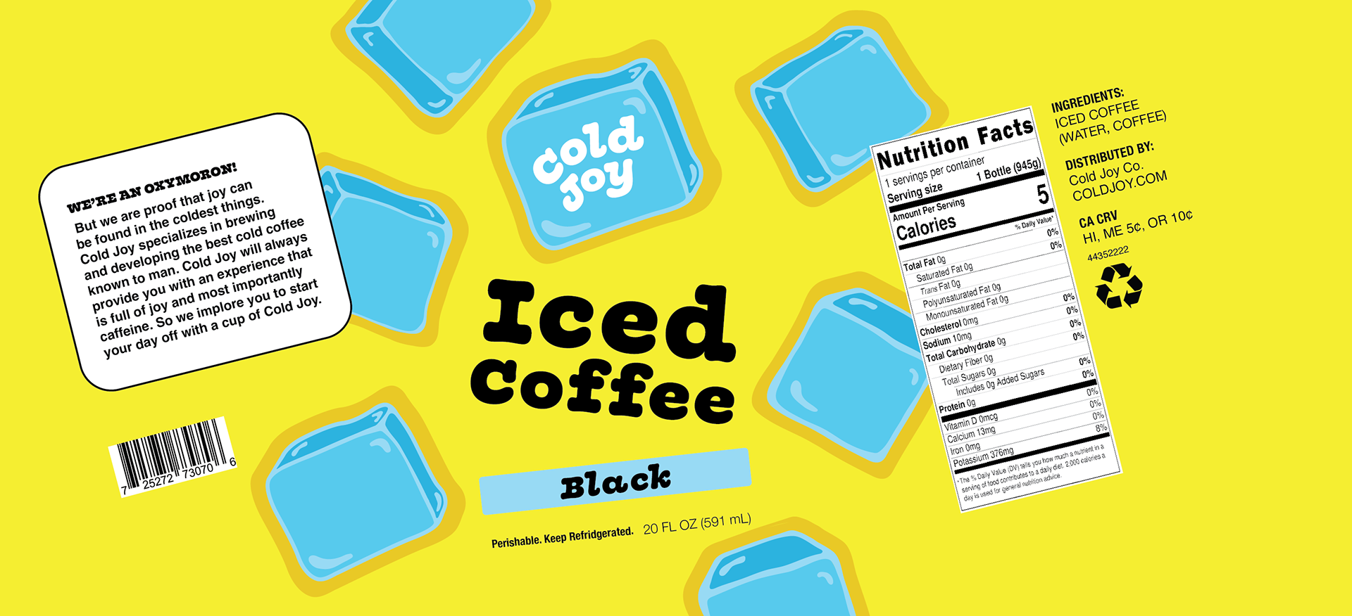 This joy comes cold! Made for those who like a colder cup of caffeine in the morning. Cold Joy is an iced coffee company that specializes in brewing you an iced cup of joy.